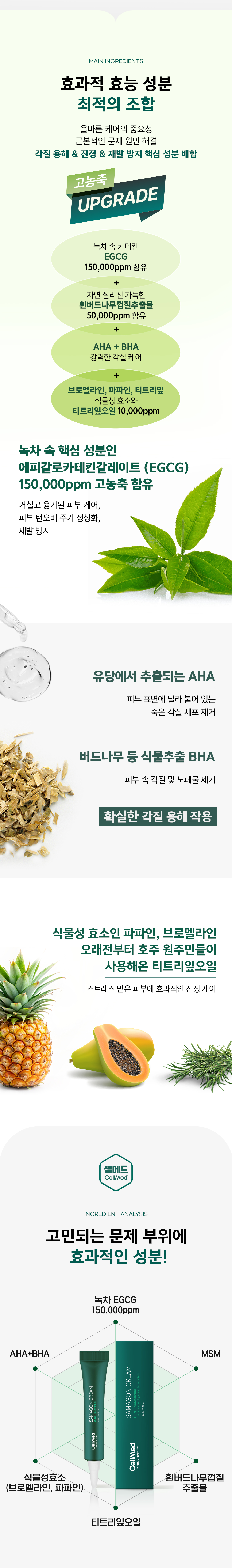 NanoPlex 리포좀, 녹차추출물 20%, AHA+BHA, 티트리잎오일, 식물성효소(브로멜라인 파파인)