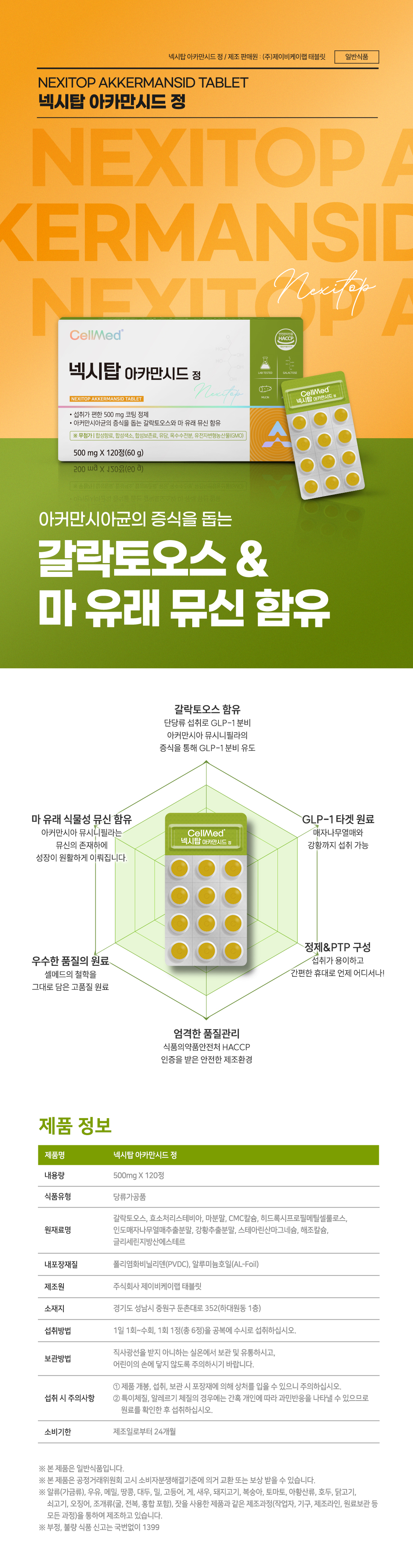갈락토오스, 효소처리스테비아, 마분말, CMC칼슘, 히드록시프로필메틸셀룰로스, 인도매자나무열매추출분말, 강황추출분말, 스테아린산마그네슘, 해조칼슘, 글리세린지방산에스테르