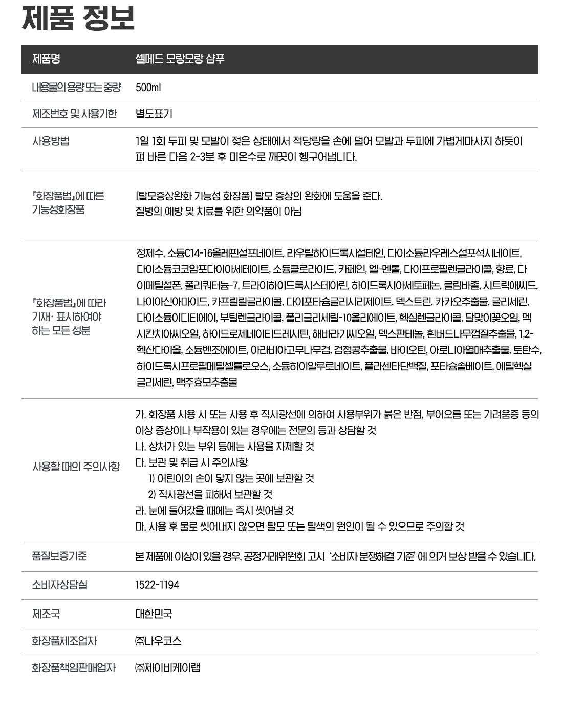1일 1회 두피 및 모발이 젖은 상태에서 적당량을 손에 덜어 모발과 두피에 가볍게 마사지 하듯이 펴 바른 다음 2~3분 후 미온수로 깨끗이 헹구어냅니다.